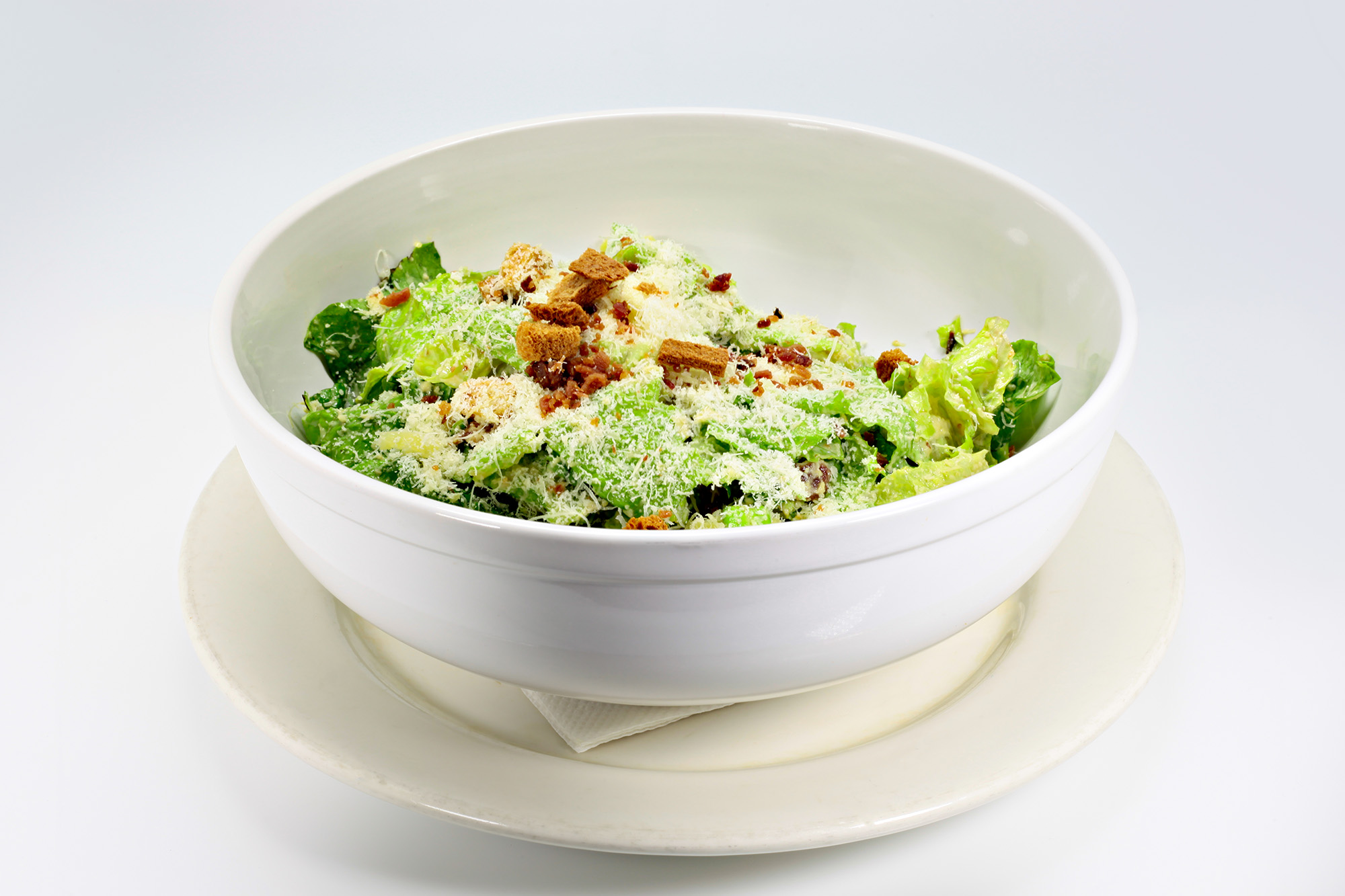 lechuga romana, queso pecorino, aderezo, crotones, tocineta tostada